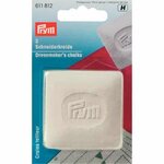 Der Kreideschärfer ist das perfekte Werkzeug zum Schärfen der Schneider- und Zauberkreideplatten von Prym. Auf der oberen Seite des Kreideschärfers aus violettem Kunststoff befinden sich V-förmig angeordnete Kunststoffkanten, auf der die Kante der abgenutzten Kreideplatte so lange hin und her bewegt wird, bis sie wieder geschärft ist. Der Abrieb der Kreide fällt beim Schärfen einfach in den integrierten Sammelbehälter des Kreideschärfers. Durch einen Schieber auf der Unterseite kann der Kreideschärfer geöffnet und entleert werden.